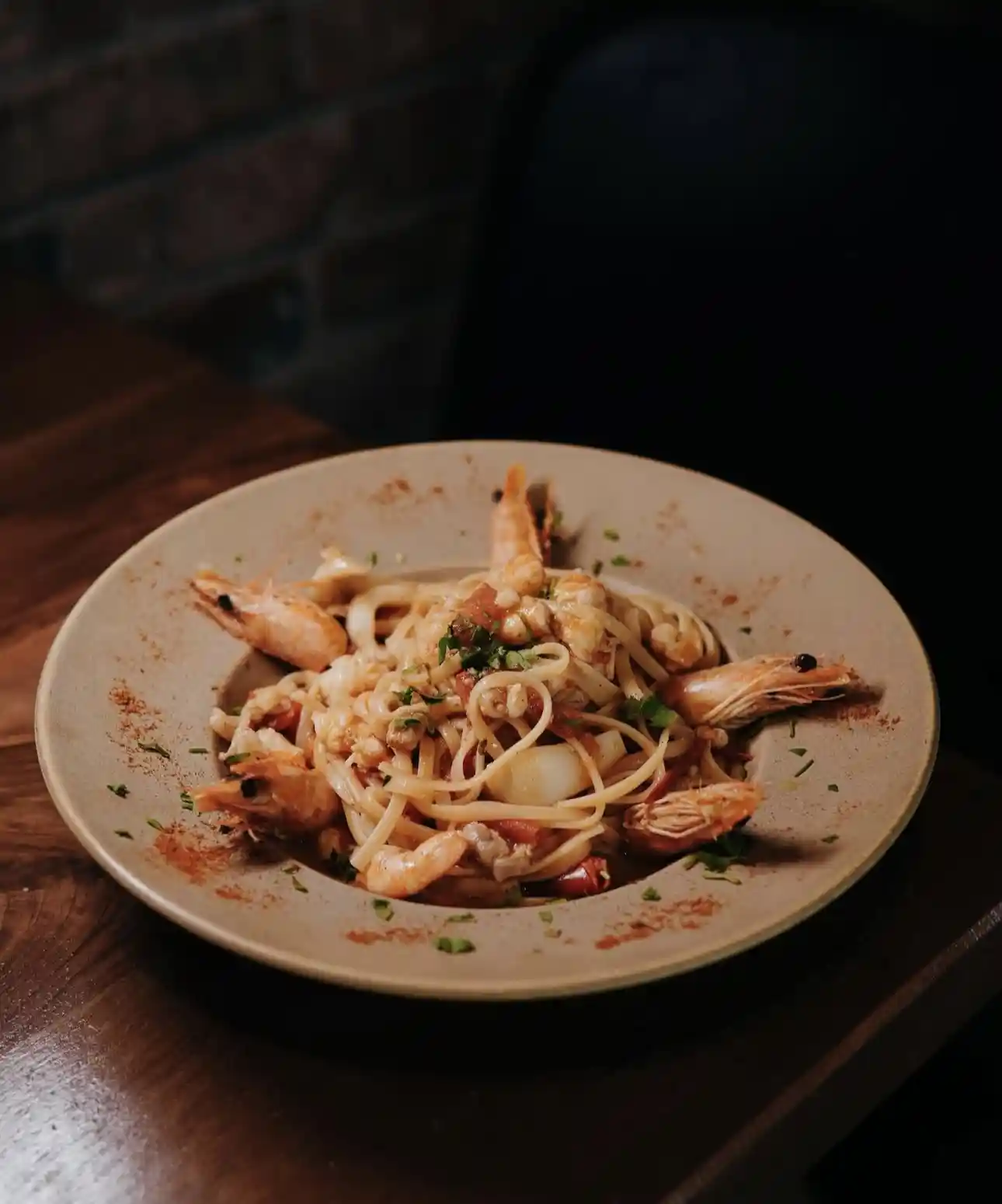 shrimp, tomato, green salad